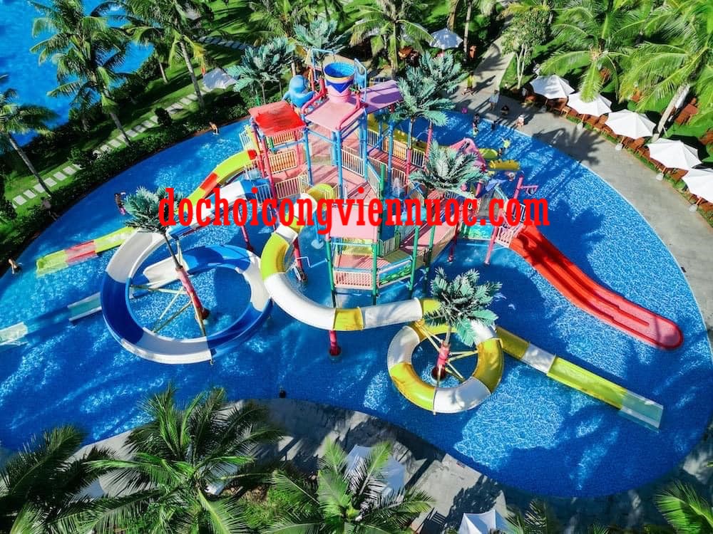 Nhà trượt liên hoàn ngoài trời lắp đặt tại các khu resort, hồ bơi khu du lịch, khách sạn hạng sang với chất liệu nhựa composite cap cấp, khung thép nhúng kẽm hoặc khung inox 304